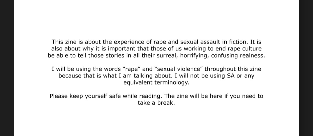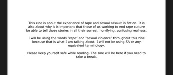 this zine is about rape is, appropriately, about storytelling instances of sexual assault and how that can unburden and heal us as both survivors and friends of survivors. It's also about the disgust response, erotic horror, traumatized splitting, and more.